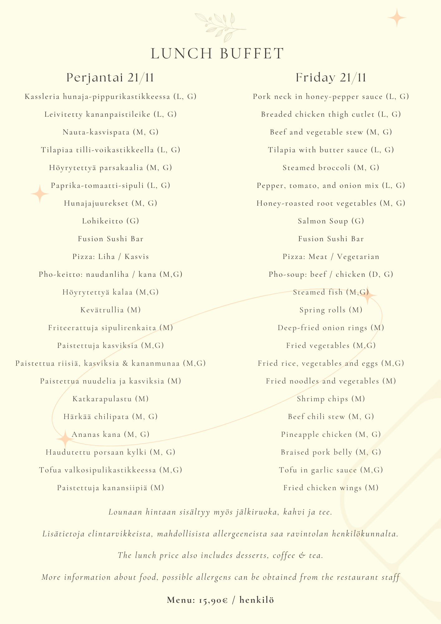 Fusion’s lunch buffet adds a touch of international flair and freshness to your workday.